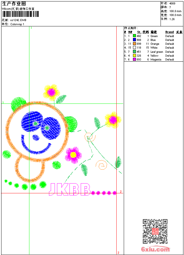 - 版带文件需绣花软件方可打开,可配色打印导出各种格式或直接上机绣。如无绣花软件可下载1:1模拟效果图。