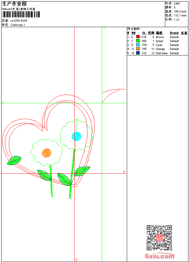 - emb花版参数: 大小:28.00 KB / 尺寸:112*100[毫米] / 针数:2497针 / 线色:5 / 格式:emb / 版本:9