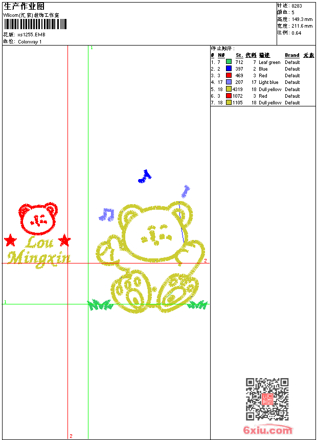 - emb花版参数: 大小:89.00 KB / 尺寸:212*149[毫米] / 针数:8283针 / 线色:5 / 格式:emb / 版本:9
