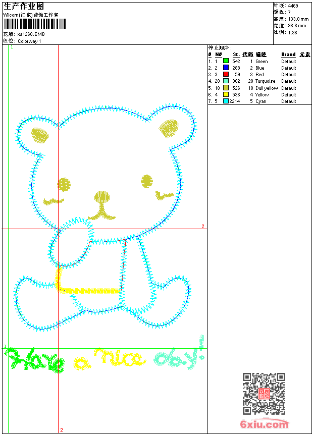- emb花版参数: 大小:63.00 KB / 尺寸:99*133[毫米] / 针数:4469针 / 线色:7 / 格式:emb / 版本:9