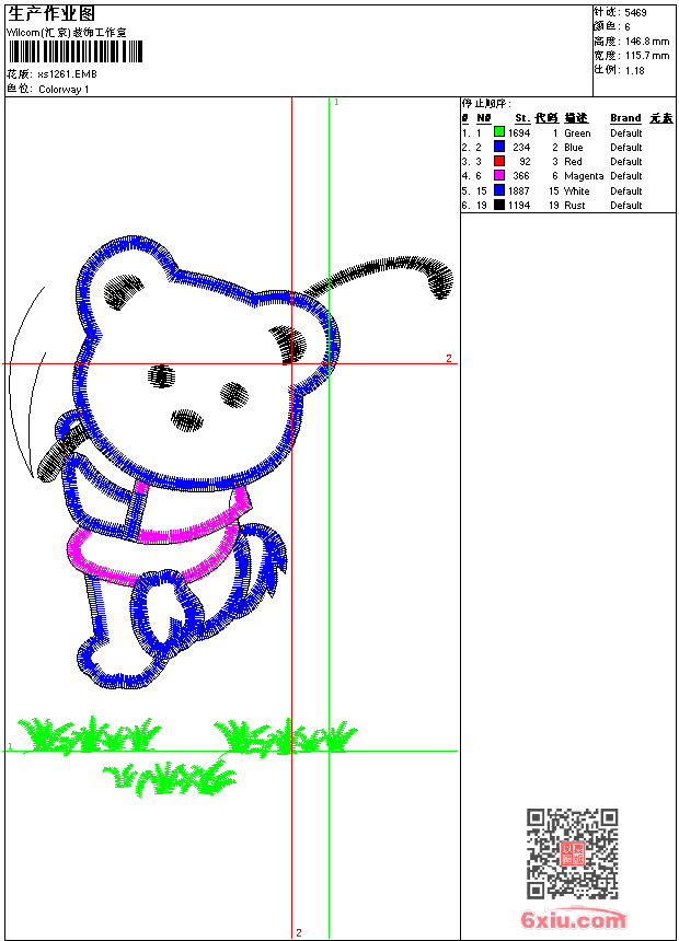 - emb花版参数: 大小:51.50 KB / 尺寸:116*147[毫米] / 针数:5469针 / 线色:6 / 格式:emb / 版本:9