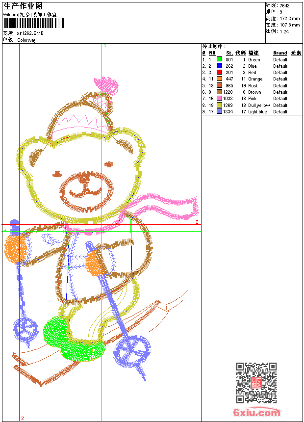 - 版带文件需绣花软件方可打开,可配色打印导出各种格式或直接上机绣。如无绣花软件可下载1:1模拟效果图。