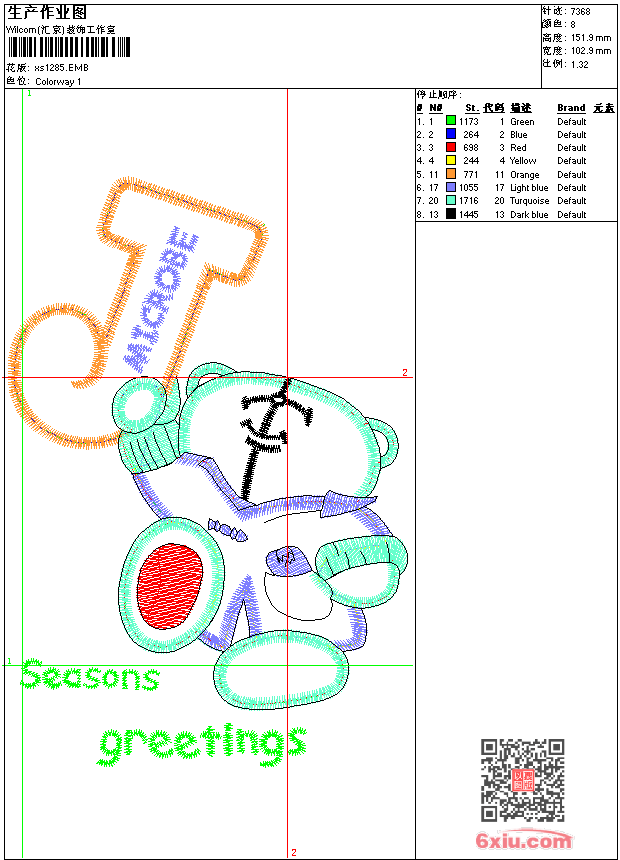 - 版带文件需绣花软件方可打开,可配色打印导出各种格式或直接上机绣。如无绣花软件可下载1:1模拟效果图。