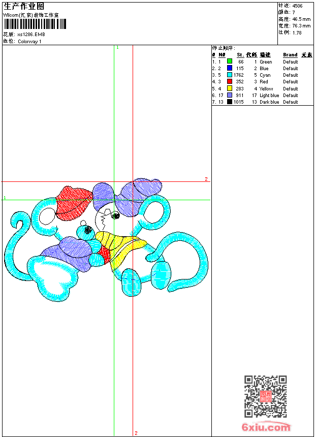 - 版带文件需绣花软件方可打开,可配色打印导出各种格式或直接上机绣。如无绣花软件可下载1:1模拟效果图。