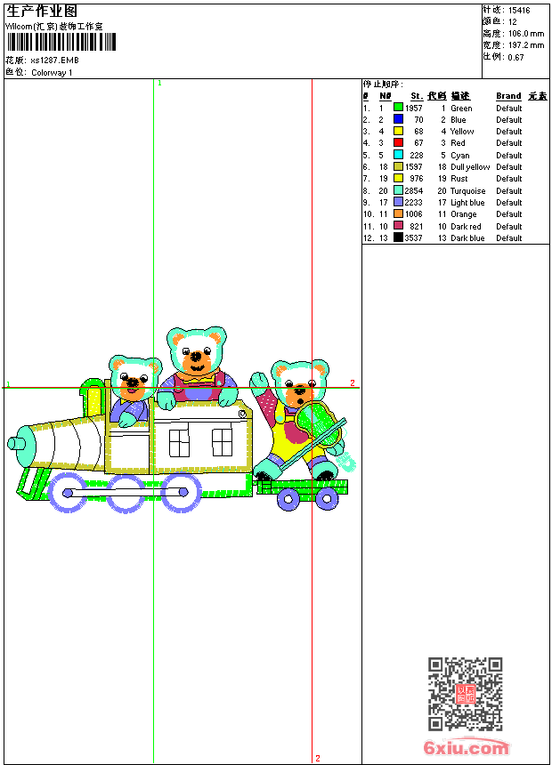 - 版带文件需绣花软件方可打开,可配色打印导出各种格式或直接上机绣。如无绣花软件可下载1:1模拟效果图。