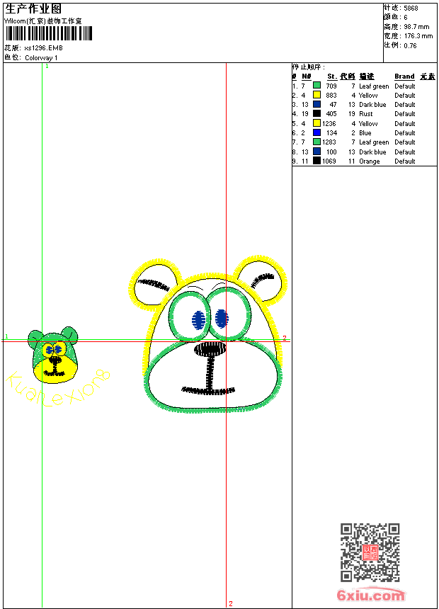 - 版带文件需绣花软件方可打开,可配色打印导出各种格式或直接上机绣。如无绣花软件可下载1:1模拟效果图。