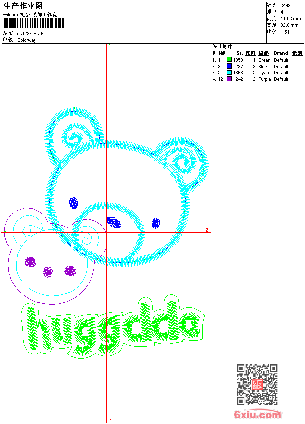 - 版带文件需绣花软件方可打开,可配色打印导出各种格式或直接上机绣。如无绣花软件可下载1:1模拟效果图。