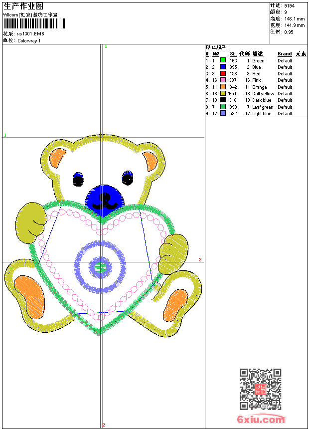 - 版带文件需绣花软件方可打开,可配色打印导出各种格式或直接上机绣。如无绣花软件可下载1:1模拟效果图。
