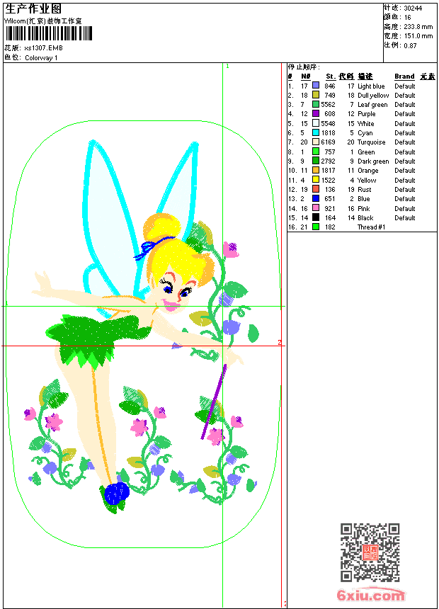 - emb花版参数: 大小:149.50 KB / 尺寸:151*234[毫米] / 针数:30244针 / 线色:16 / 格式:emb / 版本:9