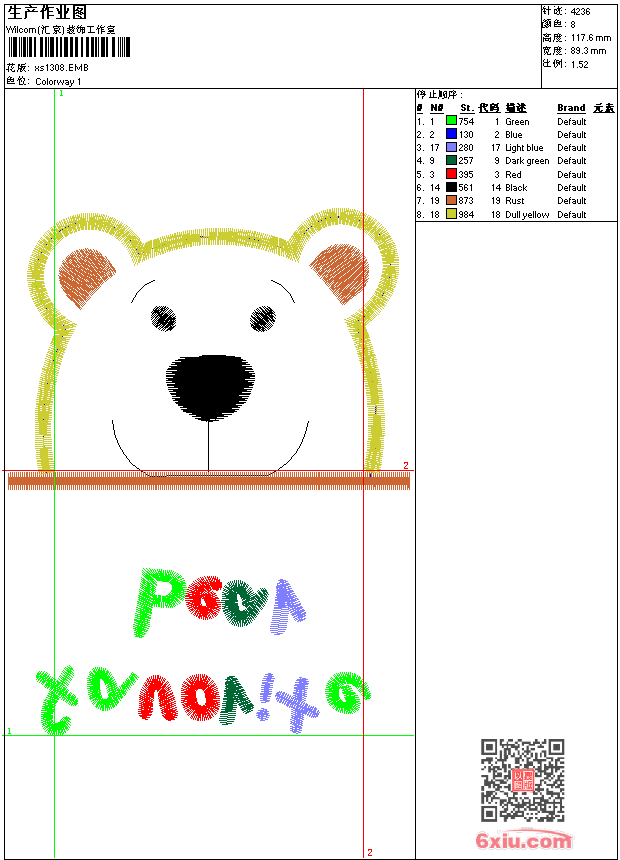 - 版带文件需绣花软件方可打开,可配色打印导出各种格式或直接上机绣。如无绣花软件可下载1:1模拟效果图。