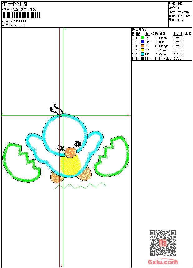 - 版带文件需绣花软件方可打开,可配色打印导出各种格式或直接上机绣。如无绣花软件可下载1:1模拟效果图。