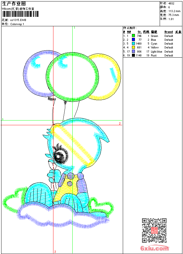 - emb花版参数: 大小:60.00 KB / 尺寸:75*113[毫米] / 针数:4932针 / 线色:6 / 格式:emb / 版本:9