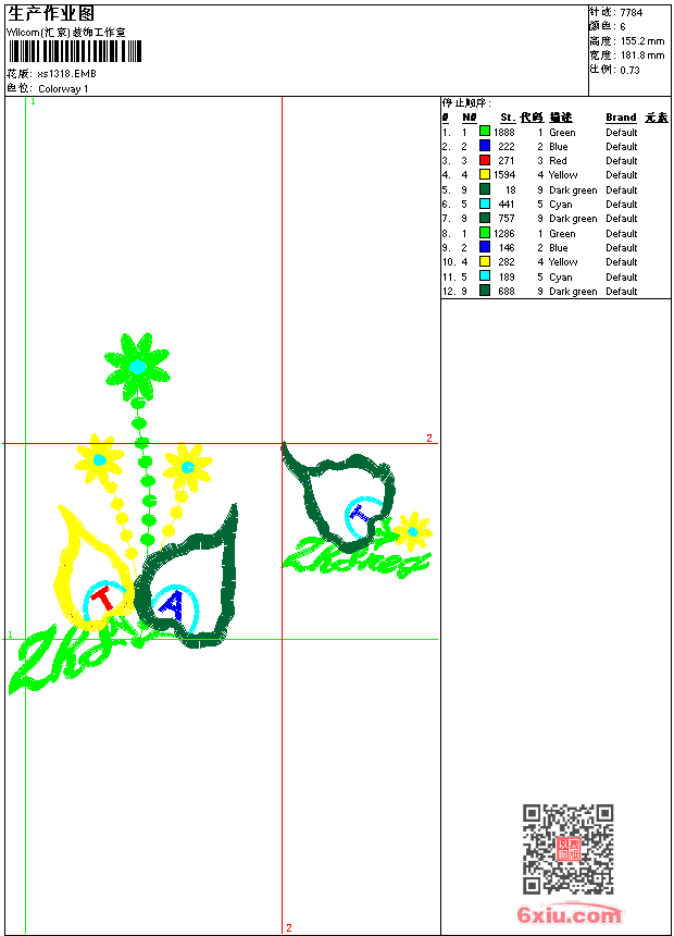 - emb花版参数: 大小:63.00 KB / 尺寸:182*155[毫米] / 针数:7784针 / 线色:6 / 格式:emb / 版本:9
