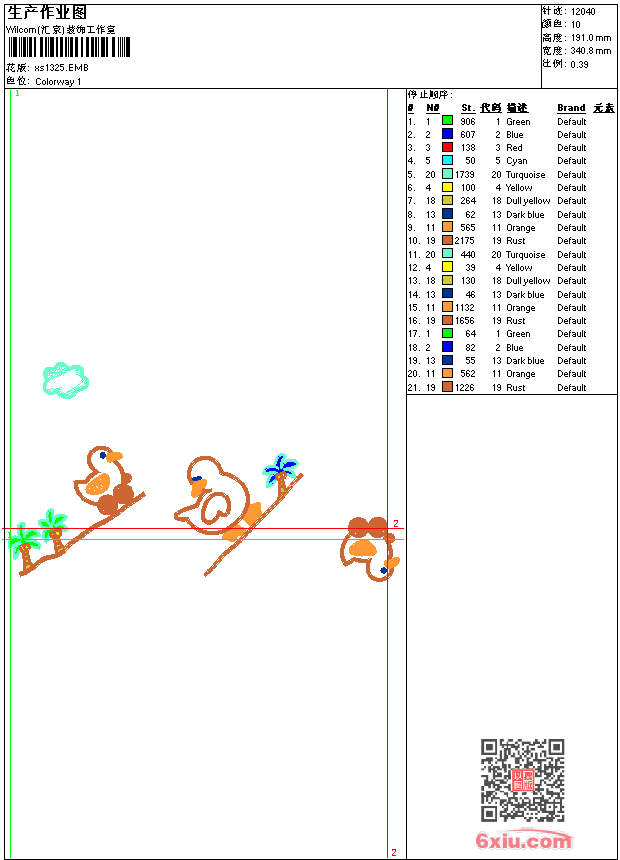 - 版带文件需绣花软件方可打开,可配色打印导出各种格式或直接上机绣。如无绣花软件可下载1:1模拟效果图。