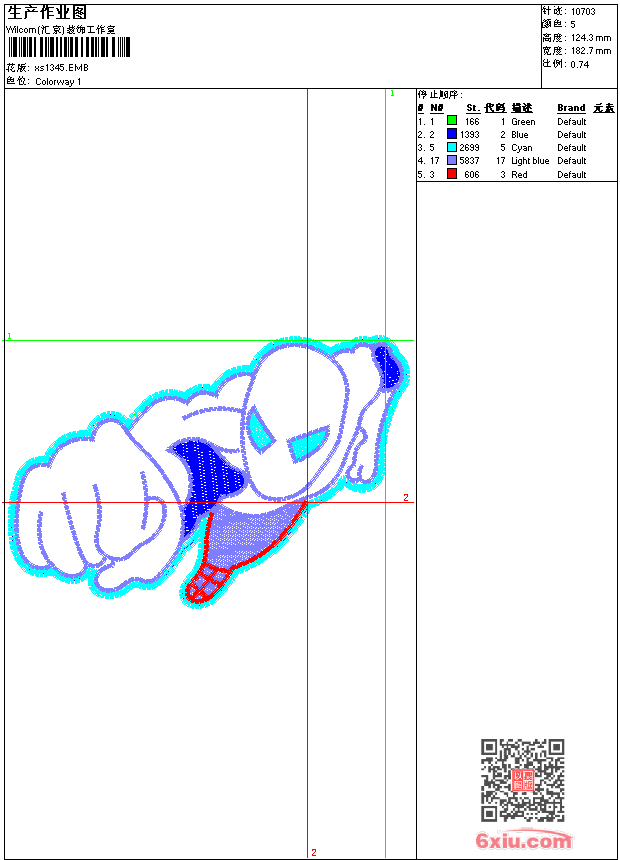 - 版带文件需绣花软件方可打开,可配色打印导出各种格式或直接上机绣。如无绣花软件可下载1:1模拟效果图。