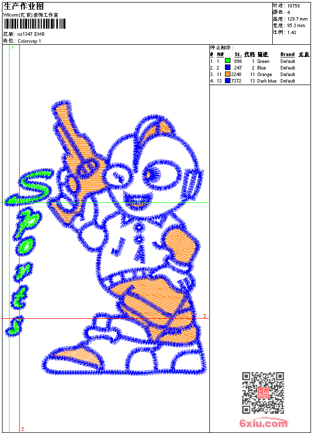 - 版带文件需绣花软件方可打开,可配色打印导出各种格式或直接上机绣。如无绣花软件可下载1:1模拟效果图。