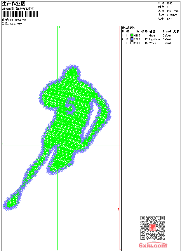 - emb花版参数: 大小:49.50 KB / 尺寸:92*115[毫米] / 针数:9243针 / 线色:3 / 格式:emb / 版本:9