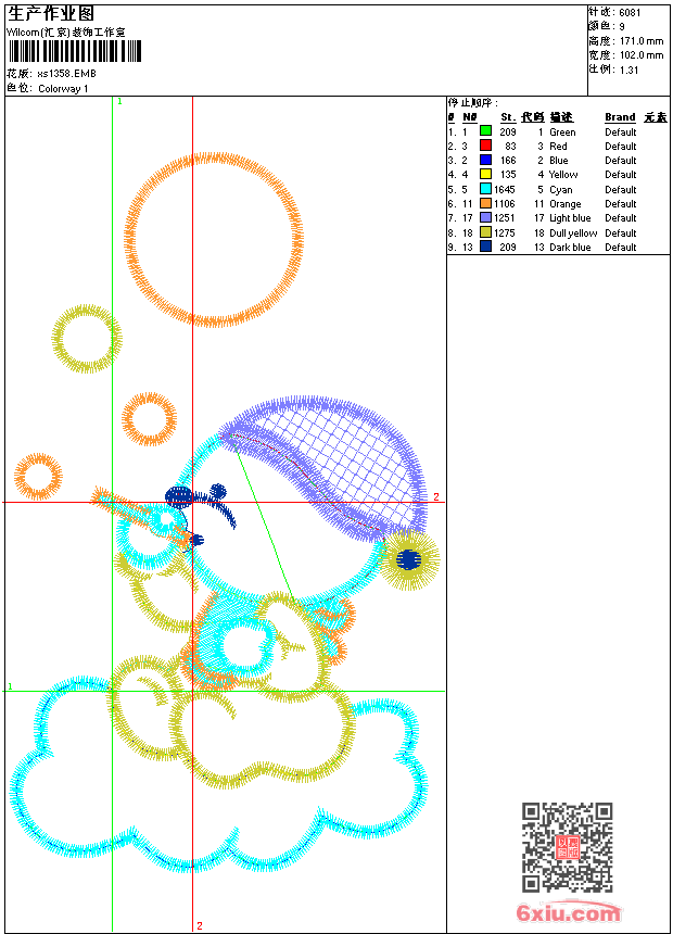 - 版带文件需绣花软件方可打开,可配色打印导出各种格式或直接上机绣。如无绣花软件可下载1:1模拟效果图。