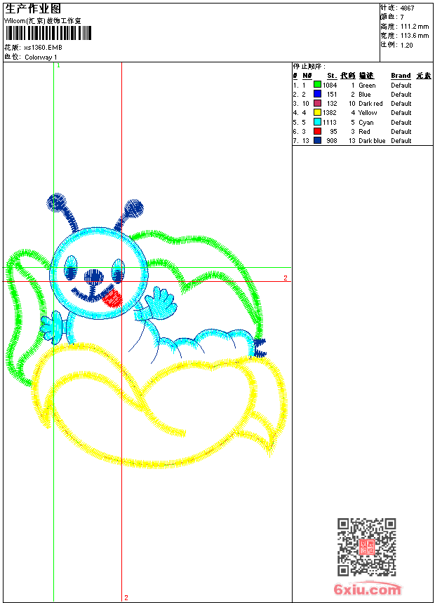- emb花版参数: 大小:59.50 KB / 尺寸:114*111[毫米] / 针数:4867针 / 线色:7 / 格式:emb / 版本:9
