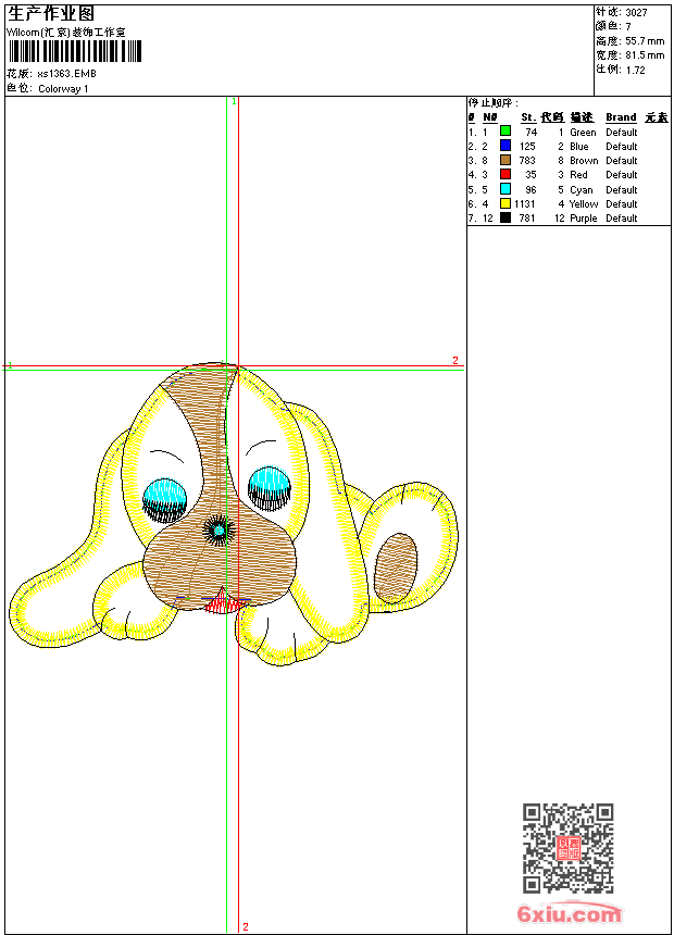 - 版带文件需绣花软件方可打开,可配色打印导出各种格式或直接上机绣。如无绣花软件可下载1:1模拟效果图。