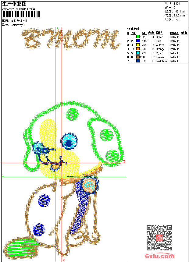 - 版带文件需绣花软件方可打开,可配色打印导出各种格式或直接上机绣。如无绣花软件可下载1:1模拟效果图。