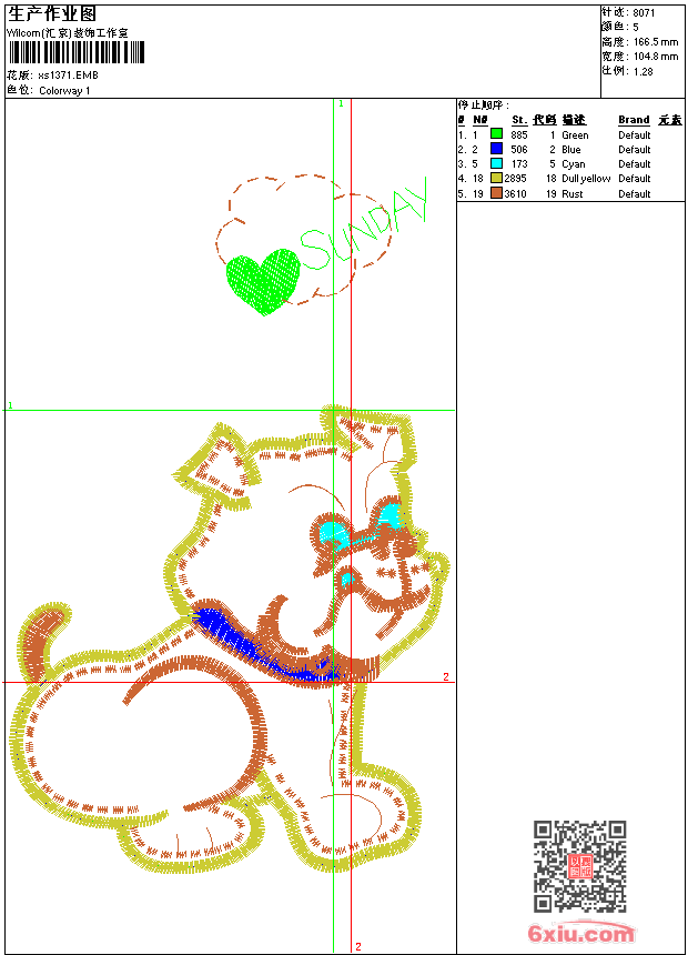 - 版带文件需绣花软件方可打开,可配色打印导出各种格式或直接上机绣。如无绣花软件可下载1:1模拟效果图。