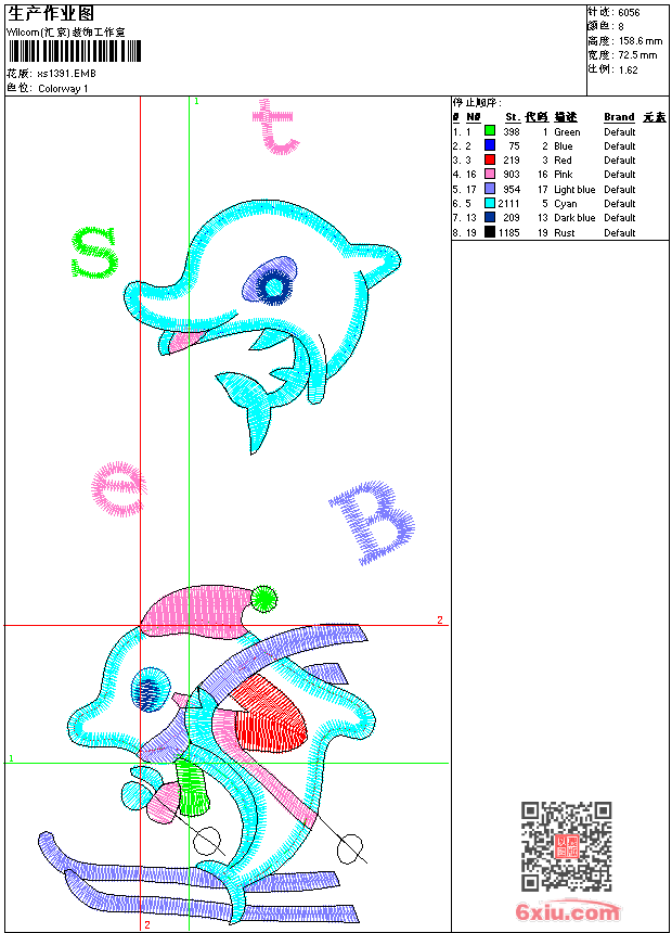 - 版带文件需绣花软件方可打开,可配色打印导出各种格式或直接上机绣。如无绣花软件可下载1:1模拟效果图。