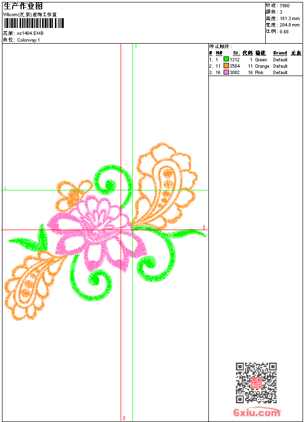 - 版带文件需绣花软件方可打开,可配色打印导出各种格式或直接上机绣。如无绣花软件可下载1:1模拟效果图。
