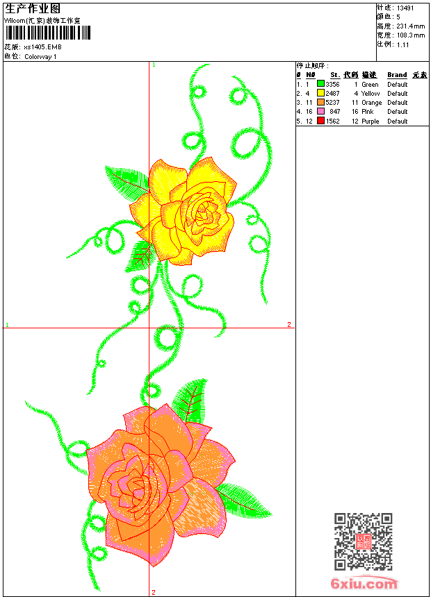 - 版带文件需绣花软件方可打开,可配色打印导出各种格式或直接上机绣。如无绣花软件可下载1:1模拟效果图。