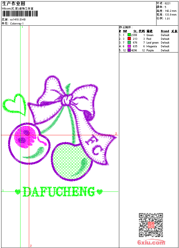 - 版带文件需绣花软件方可打开,可配色打印导出各种格式或直接上机绣。如无绣花软件可下载1:1模拟效果图。