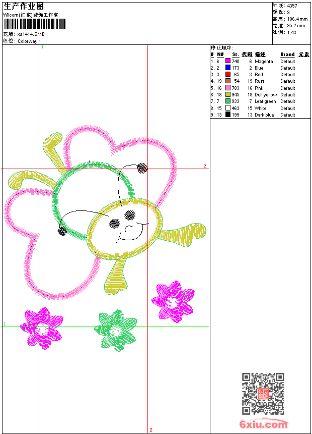 - emb花版参数: 大小:46.50 KB / 尺寸:95*106[毫米] / 针数:4357针 / 线色:9 / 格式:emb / 版本:9