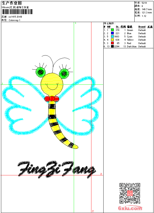 - emb花版参数: 大小:50.50 KB / 尺寸:121*150[毫米] / 针数:5213针 / 线色:6 / 格式:emb / 版本:9