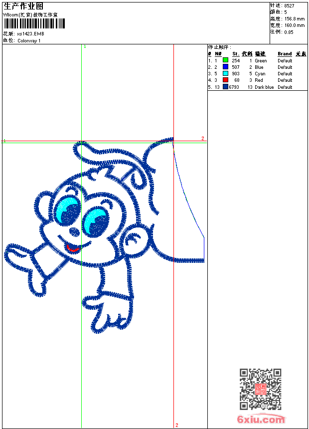 - emb花版参数: 大小:67.00 KB / 尺寸:160*157[毫米] / 针数:8527针 / 线色:5 / 格式:emb / 版本:9