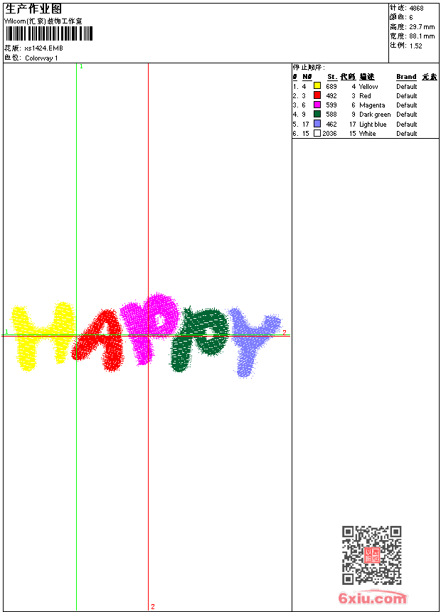 - emb花版参数: 大小:44.50 KB / 尺寸:88*30[毫米] / 针数:4868针 / 线色:6 / 格式:emb / 版本:9