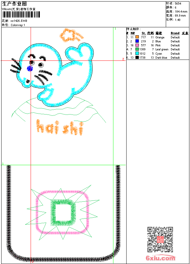 - 版带文件需绣花软件方可打开,可配色打印导出各种格式或直接上机绣。如无绣花软件可下载1:1模拟效果图。
