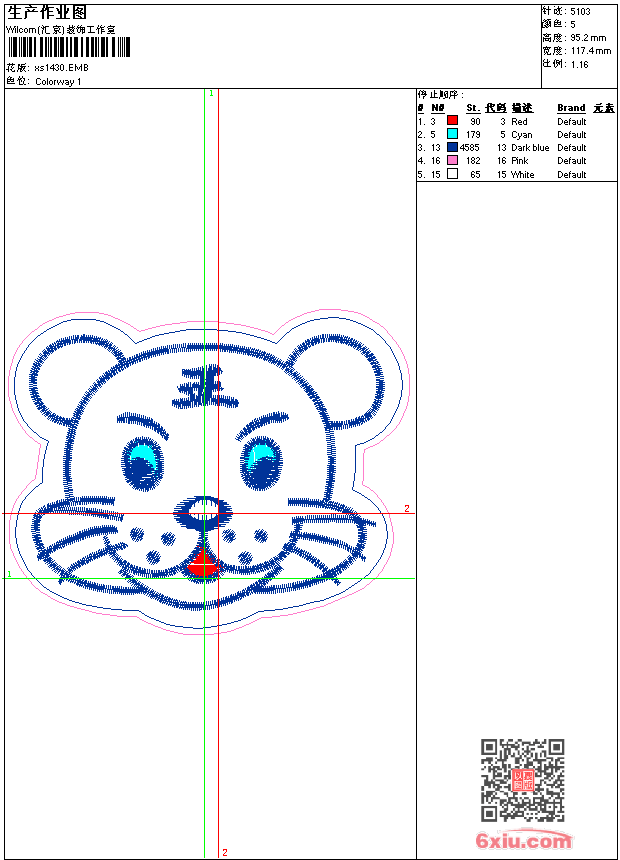 - emb花版参数: 大小:45.50 KB / 尺寸:117*95[毫米] / 针数:5103针 / 线色:5 / 格式:emb / 版本:9
