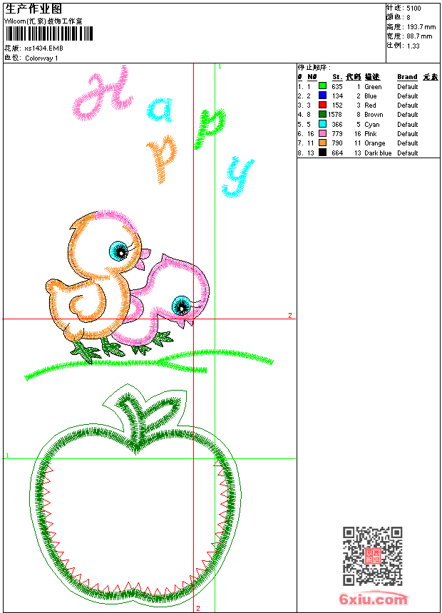 - 版带文件需绣花软件方可打开,可配色打印导出各种格式或直接上机绣。如无绣花软件可下载1:1模拟效果图。