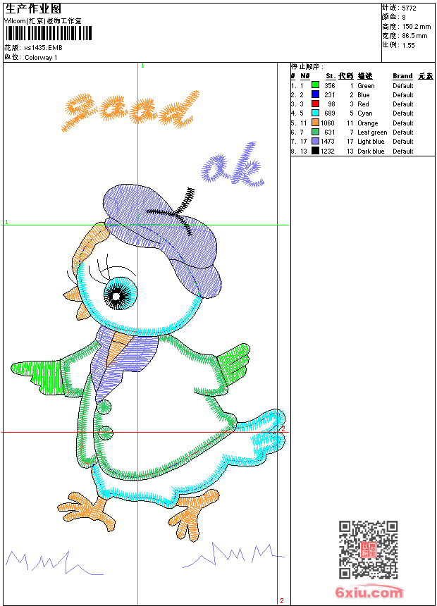 - 版带文件需绣花软件方可打开,可配色打印导出各种格式或直接上机绣。如无绣花软件可下载1:1模拟效果图。