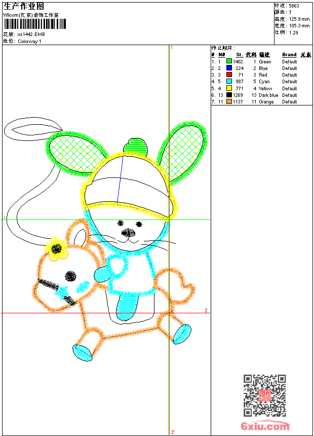 - 版带文件需绣花软件方可打开,可配色打印导出各种格式或直接上机绣。如无绣花软件可下载1:1模拟效果图。