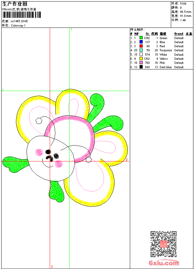 - 版带文件需绣花软件方可打开,可配色打印导出各种格式或直接上机绣。如无绣花软件可下载1:1模拟效果图。