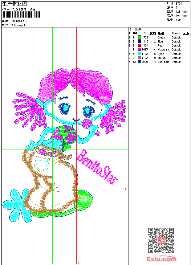- 版带文件需绣花软件方可打开,可配色打印导出各种格式或直接上机绣。如无绣花软件可下载1:1模拟效果图。