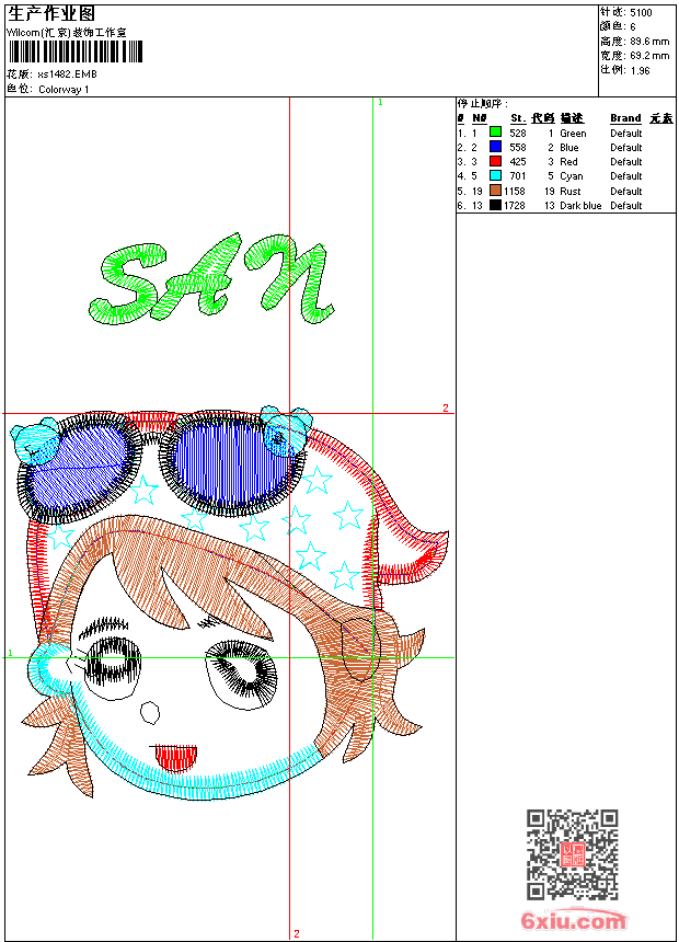 - 版带文件需绣花软件方可打开,可配色打印导出各种格式或直接上机绣。如无绣花软件可下载1:1模拟效果图。