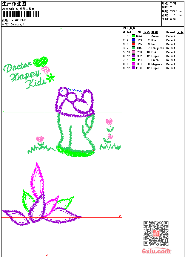 - emb花版参数: 大小:69.00 KB / 尺寸:157*224[毫米] / 针数:7459针 / 线色:7 / 格式:emb / 版本:9