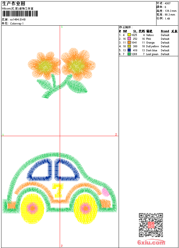 - 版带文件需绣花软件方可打开,可配色打印导出各种格式或直接上机绣。如无绣花软件可下载1:1模拟效果图。