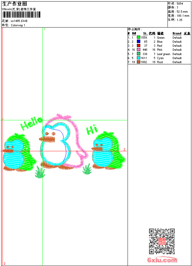 - 版带文件需绣花软件方可打开,可配色打印导出各种格式或直接上机绣。如无绣花软件可下载1:1模拟效果图。