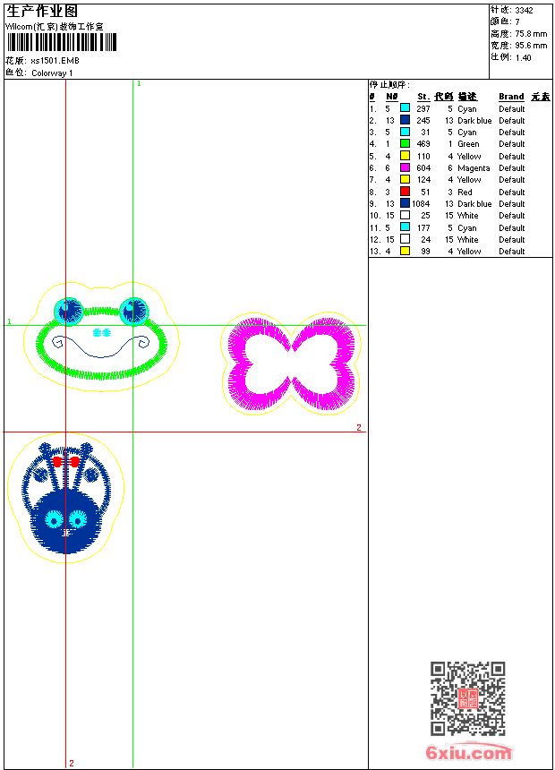 - 版带文件需绣花软件方可打开,可配色打印导出各种格式或直接上机绣。如无绣花软件可下载1:1模拟效果图。