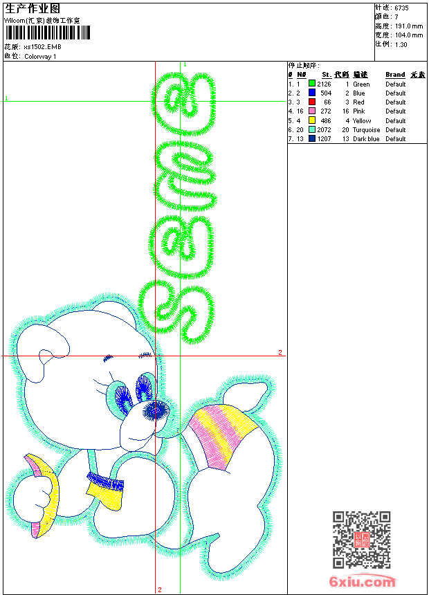 - 版带文件需绣花软件方可打开,可配色打印导出各种格式或直接上机绣。如无绣花软件可下载1:1模拟效果图。
