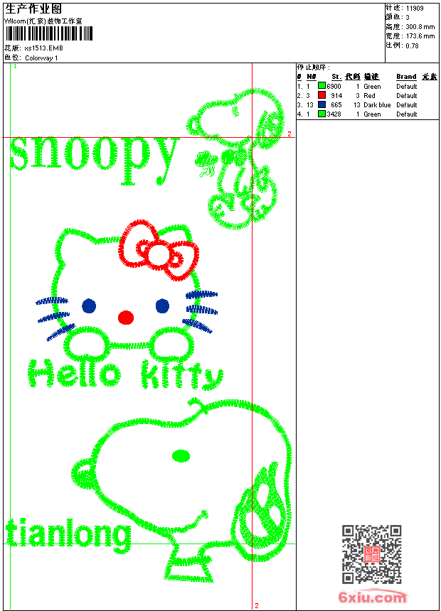 - 版带文件需绣花软件方可打开,可配色打印导出各种格式或直接上机绣。如无绣花软件可下载1:1模拟效果图。