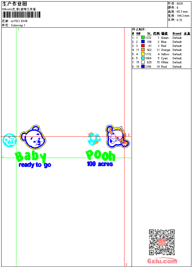 - 版带文件需绣花软件方可打开,可配色打印导出各种格式或直接上机绣。如无绣花软件可下载1:1模拟效果图。