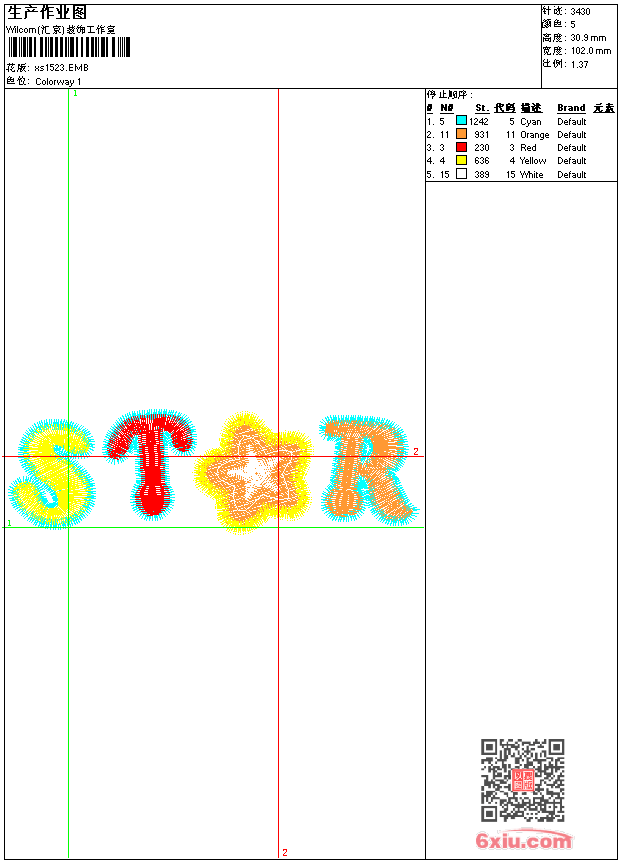 - emb花版参数: 大小:41.00 KB / 尺寸:102*31[毫米] / 针数:3430针 / 线色:5 / 格式:emb / 版本:9